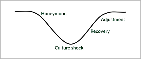 At first you may be excited by the new environment and tend to focus on the positive aspects of your experience while downplaying some difficulties, occasional negative emotions and cultural differences that may exist.